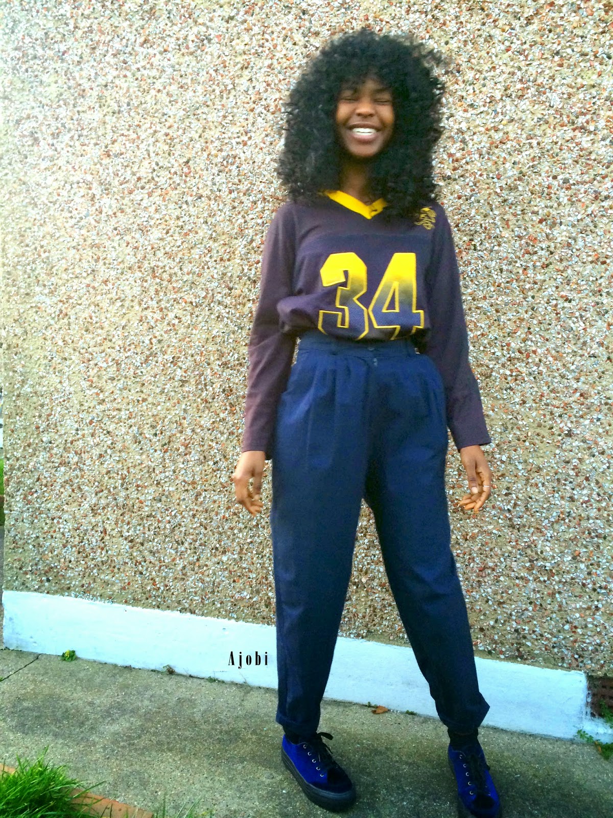 This is a quick and simple look. In all honesty, it was for a quick and simple occasion yet it still just about fits that 'Just in case you see anyone' category and completely ticks the comfy box at the same time, if you know what I mean. I love, love, love the style of theses shoes! Gosh! Velvet flatforms and I got them on sale which makes me feel even better! They're not too sporty but still extremely causal which, is great for me. The trousers too! I had to have a moment when I fully discovered the pockets! Love! Although not very practical I must admit. The top is a vintage hand me down from my brother while the trousers are a hand me down from mum. I love free clothes!